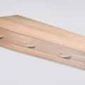 U heeft bij dit model de keuze uit handgrepen van massief hout of touw. Deze kist is voorzien van een bekleding van katoenen capitonnage, is omrand met een koord en volant, ( strook bekleding dat over de rand van de kist valt) en wordt geleverd met deken en kussen